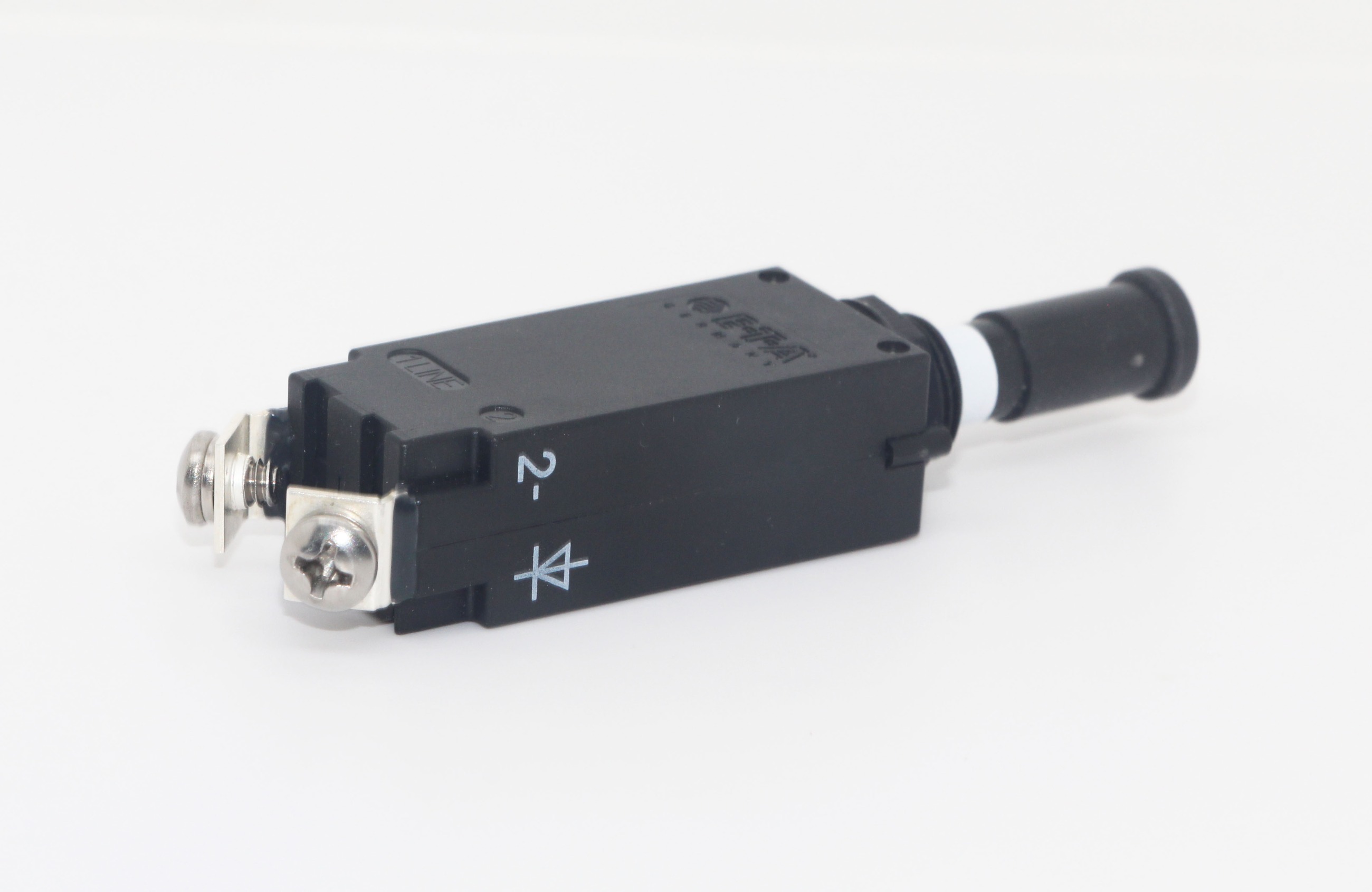 單極微型飛機(jī)模擬器開(kāi)關(guān),磁跳閘時(shí)間極快。葉片、螺釘和線繞端子。飛機(jī)式螺紋頸和推/拉按鈕,帶白色跳閘指示環(huán)。根據(jù)客戶要求,在按鈕上用粘合標(biāo)簽或標(biāo)記插入物標(biāo)明電流額定值。
